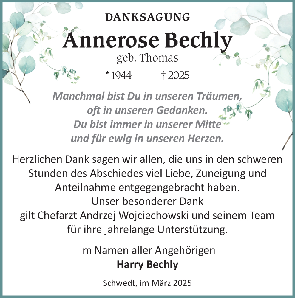 Hier finden Sie alle Traueranzeigen aus der Zeitung, die bisher für Annerose Bechly erschienen sind. Weitere Traueranzeigen, die in der Zeitung erscheinen, werden hier ebenfalls aufgelistet