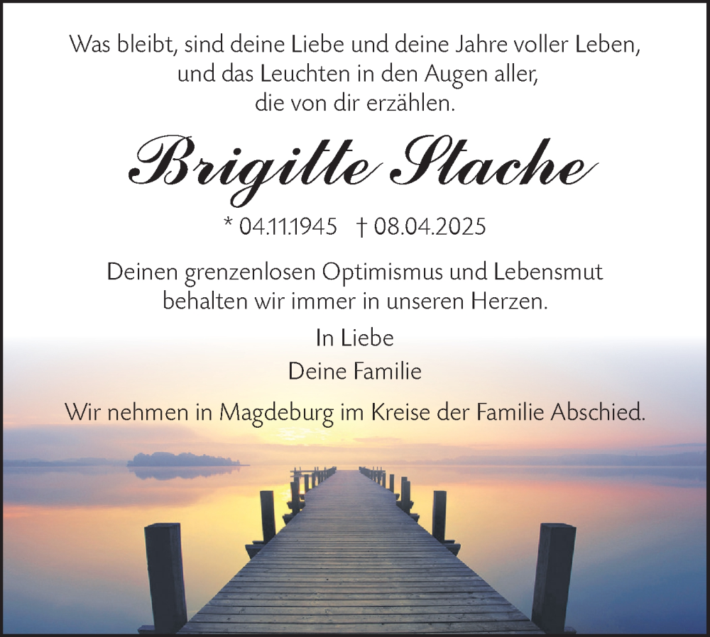 Hier finden Sie alle Traueranzeigen aus der Zeitung, die bisher für Brigitte Stache erschienen sind. Weitere Traueranzeigen, die in der Zeitung erscheinen, werden hier ebenfalls aufgelistet