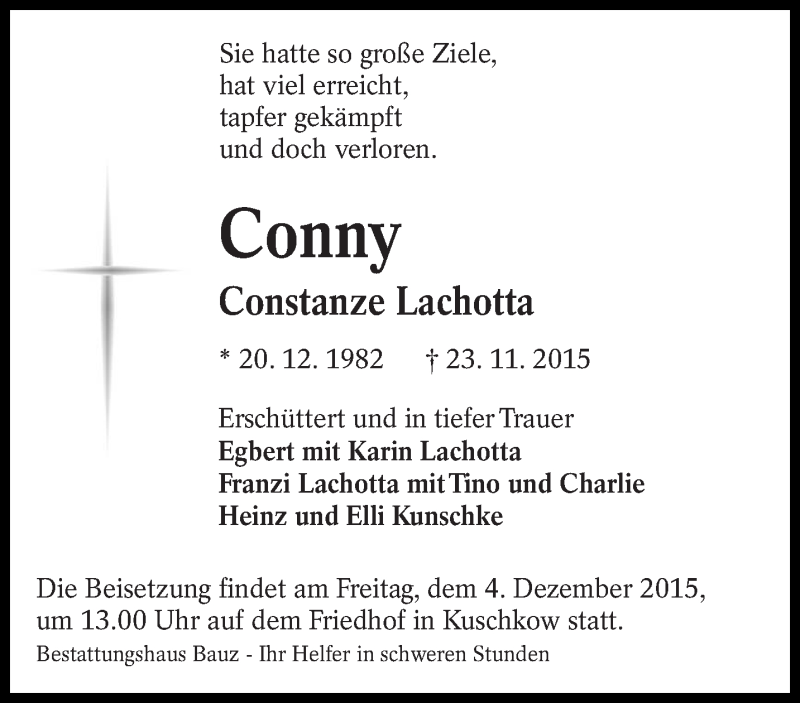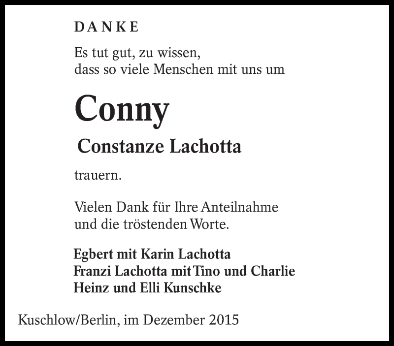 Hier finden Sie alle Traueranzeigen aus der Zeitung, die bisher für Constanze Lachotta erschienen sind. Weitere Traueranzeigen, die in der Zeitung erscheinen, werden hier ebenfalls aufgelistet