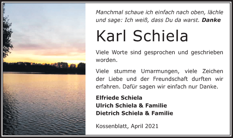 Hier finden Sie alle Traueranzeigen aus der Zeitung, die bisher für Elfriede Schiela erschienen sind. Weitere Traueranzeigen, die in der Zeitung erscheinen, werden hier ebenfalls aufgelistet