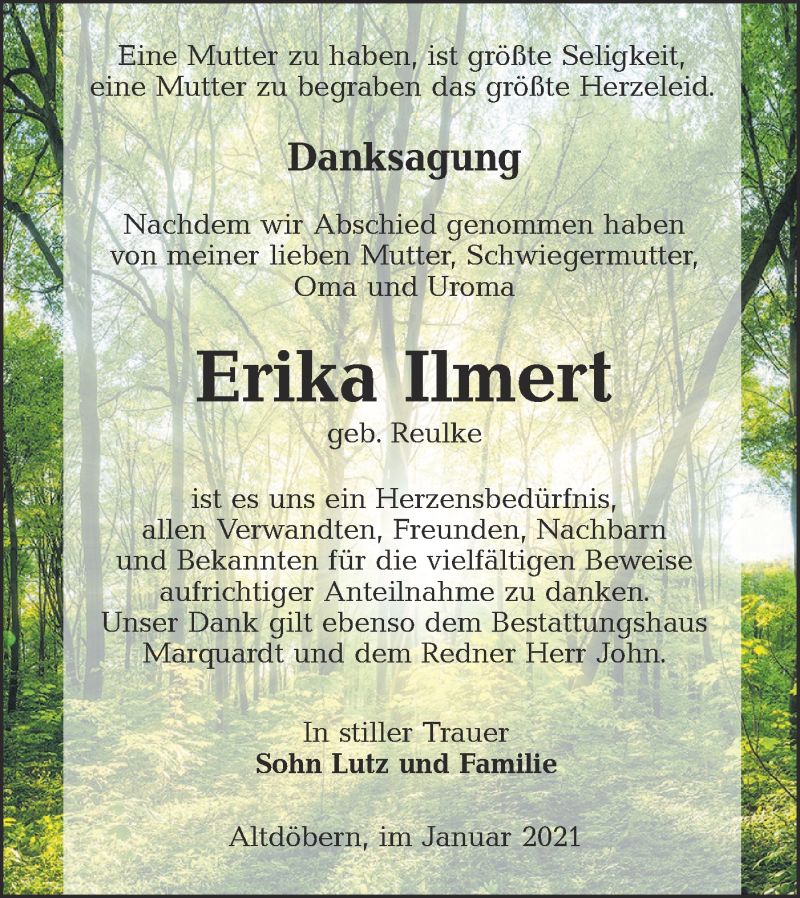 Hier finden Sie alle Traueranzeigen aus der Zeitung, die bisher für Erika Ilmert erschienen sind. Weitere Traueranzeigen, die in der Zeitung erscheinen, werden hier ebenfalls aufgelistet