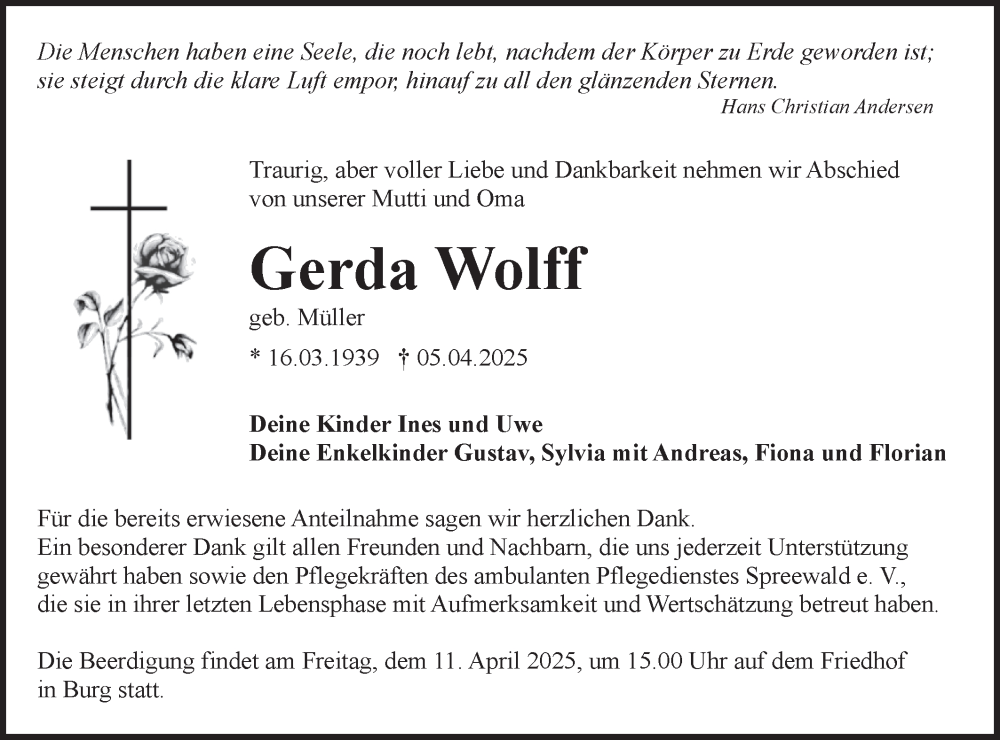 Hier finden Sie alle Traueranzeigen aus der Zeitung, die bisher für Gerda Wolff erschienen sind. Weitere Traueranzeigen, die in der Zeitung erscheinen, werden hier ebenfalls aufgelistet