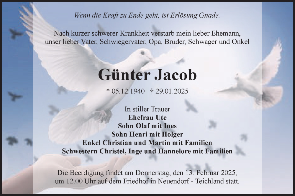 Hier finden Sie alle Traueranzeigen aus der Zeitung, die bisher für Günter Jacob erschienen sind. Weitere Traueranzeigen, die in der Zeitung erscheinen, werden hier ebenfalls aufgelistet