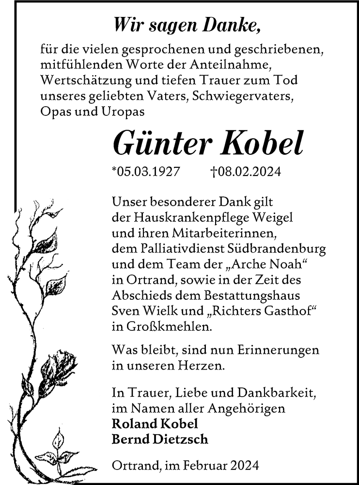 Hier finden Sie alle Traueranzeigen aus der Zeitung, die bisher für Günter Kobel erschienen sind. Weitere Traueranzeigen, die in der Zeitung erscheinen, werden hier ebenfalls aufgelistet