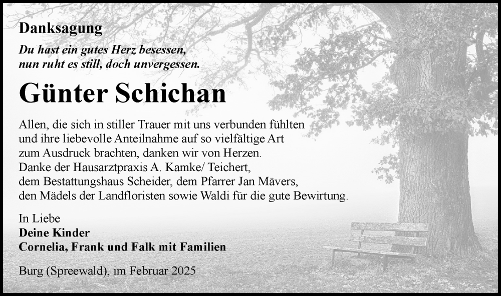 Hier finden Sie alle Traueranzeigen aus der Zeitung, die bisher für Günter Schichan erschienen sind. Weitere Traueranzeigen, die in der Zeitung erscheinen, werden hier ebenfalls aufgelistet