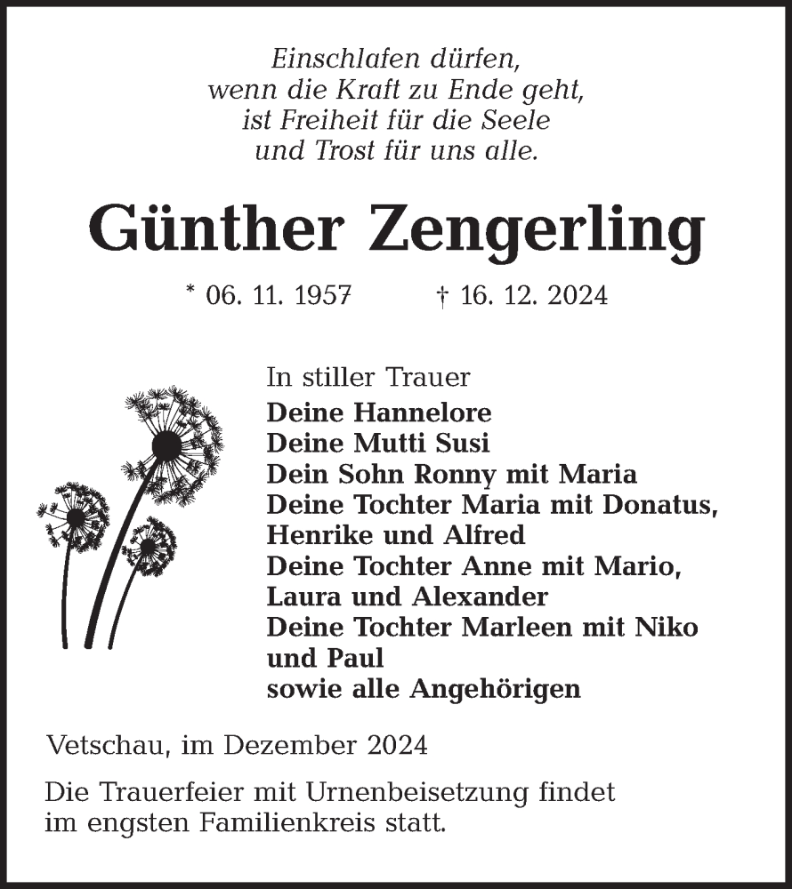 Hier finden Sie alle Traueranzeigen aus der Zeitung, die bisher für Günther Zengerling erschienen sind. Weitere Traueranzeigen, die in der Zeitung erscheinen, werden hier ebenfalls aufgelistet