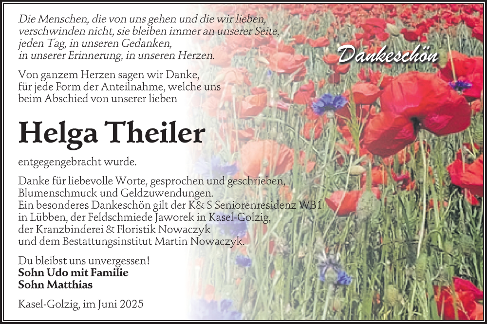 Hier finden Sie alle Traueranzeigen aus der Zeitung, die bisher für Helga Theiler erschienen sind. Weitere Traueranzeigen, die in der Zeitung erscheinen, werden hier ebenfalls aufgelistet