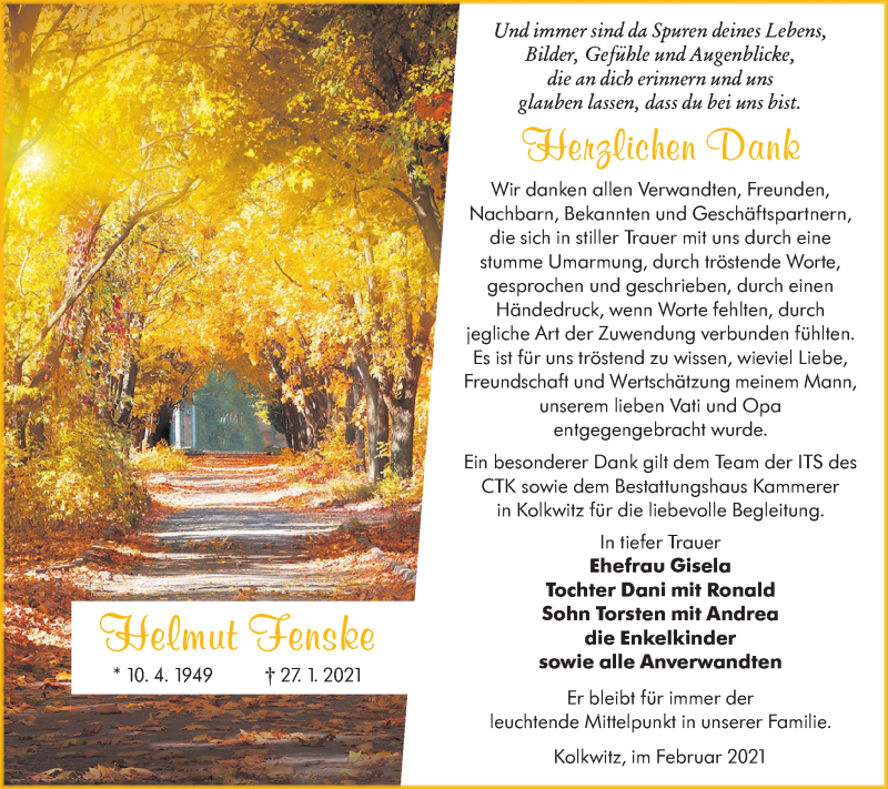 Hier finden Sie alle Traueranzeigen aus der Zeitung, die bisher für Helmut Fenske erschienen sind. Weitere Traueranzeigen, die in der Zeitung erscheinen, werden hier ebenfalls aufgelistet