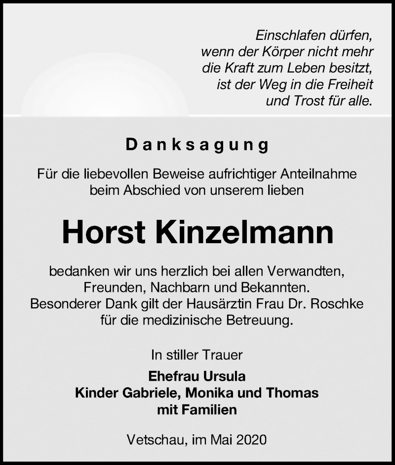 Hier finden Sie alle Traueranzeigen aus der Zeitung, die bisher für Horst Kinzelmann erschienen sind. Weitere Traueranzeigen, die in der Zeitung erscheinen, werden hier ebenfalls aufgelistet
