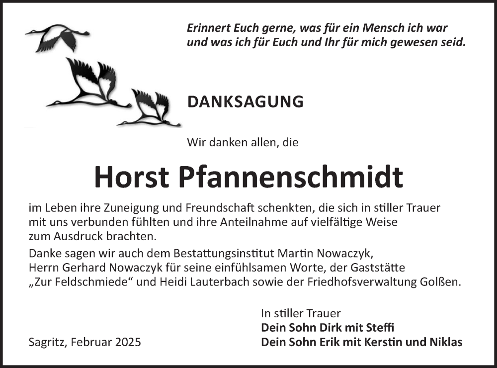 Hier finden Sie alle Traueranzeigen aus der Zeitung, die bisher für Horst Pfannenschmidt erschienen sind. Weitere Traueranzeigen, die in der Zeitung erscheinen, werden hier ebenfalls aufgelistet