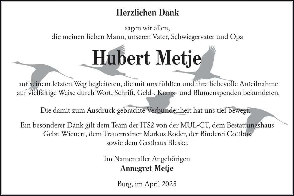 Hier finden Sie alle Traueranzeigen aus der Zeitung, die bisher für Hubert Metje erschienen sind. Weitere Traueranzeigen, die in der Zeitung erscheinen, werden hier ebenfalls aufgelistet