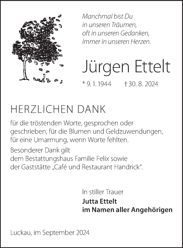Hier finden Sie alle Traueranzeigen aus der Zeitung, die bisher für Jürgen Ettelt erschienen sind. Weitere Traueranzeigen, die in der Zeitung erscheinen, werden hier ebenfalls aufgelistet
