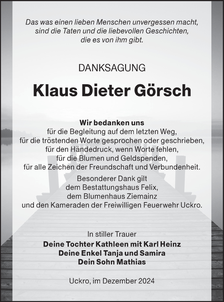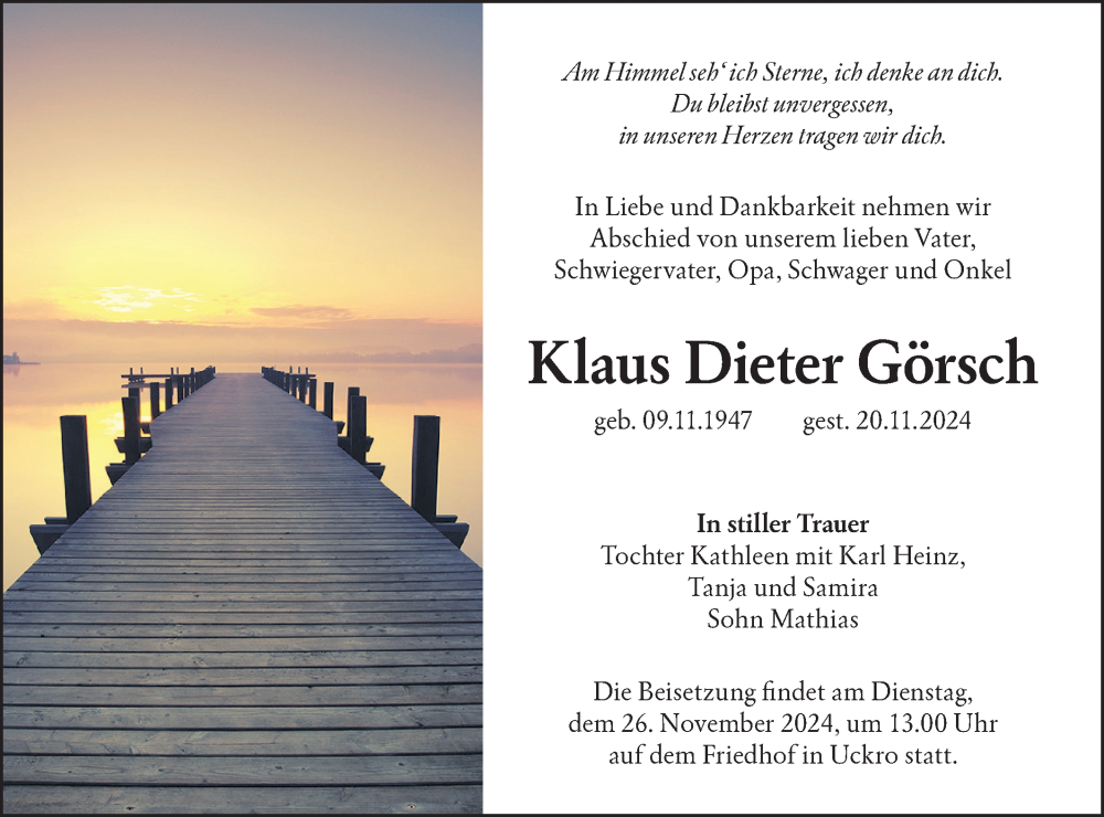 Hier finden Sie alle Traueranzeigen aus der Zeitung, die bisher für Klaus Dieter Görsch erschienen sind. Weitere Traueranzeigen, die in der Zeitung erscheinen, werden hier ebenfalls aufgelistet