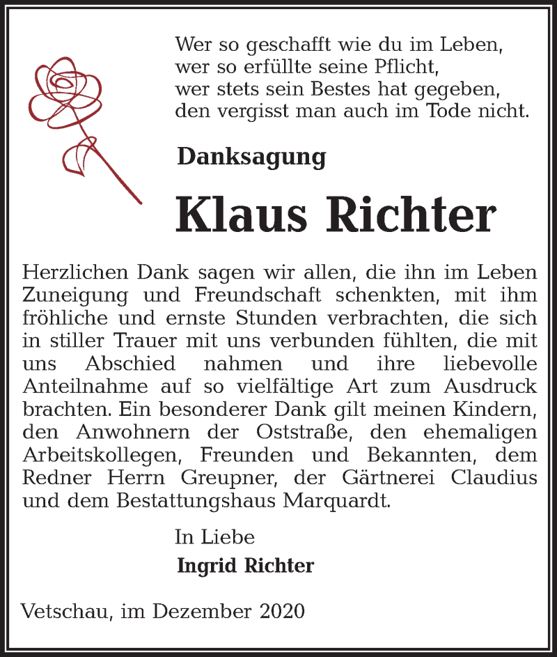 Hier finden Sie alle Traueranzeigen aus der Zeitung, die bisher für Klaus Richter erschienen sind. Weitere Traueranzeigen, die in der Zeitung erscheinen, werden hier ebenfalls aufgelistet