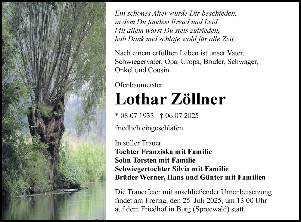 Hier finden Sie alle Traueranzeigen aus der Zeitung, die bisher für Lothar Zöllner erschienen sind. Weitere Traueranzeigen, die in der Zeitung erscheinen, werden hier ebenfalls aufgelistet