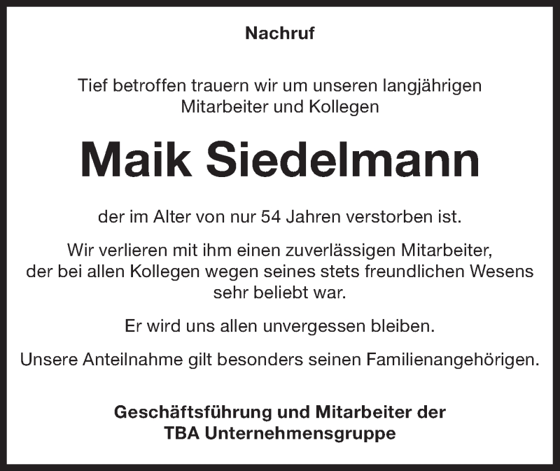 Hier finden Sie alle Traueranzeigen aus der Zeitung, die bisher für Maik Siedelmann erschienen sind. Weitere Traueranzeigen, die in der Zeitung erscheinen, werden hier ebenfalls aufgelistet