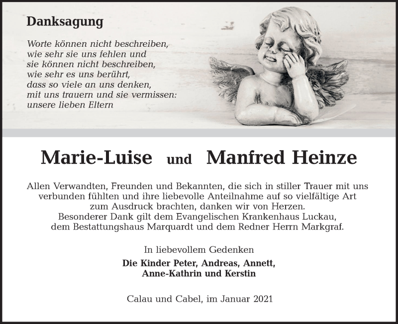 Hier finden Sie alle Traueranzeigen aus der Zeitung, die bisher für Marie-Luise Heinze erschienen sind. Weitere Traueranzeigen, die in der Zeitung erscheinen, werden hier ebenfalls aufgelistet