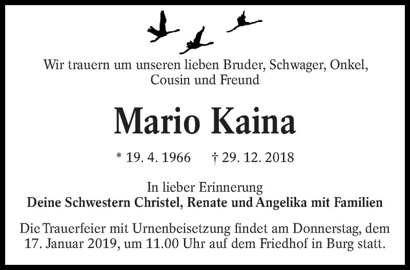 Hier finden Sie alle Traueranzeigen aus der Zeitung, die bisher für Mario Kaina erschienen sind. Weitere Traueranzeigen, die in der Zeitung erscheinen, werden hier ebenfalls aufgelistet