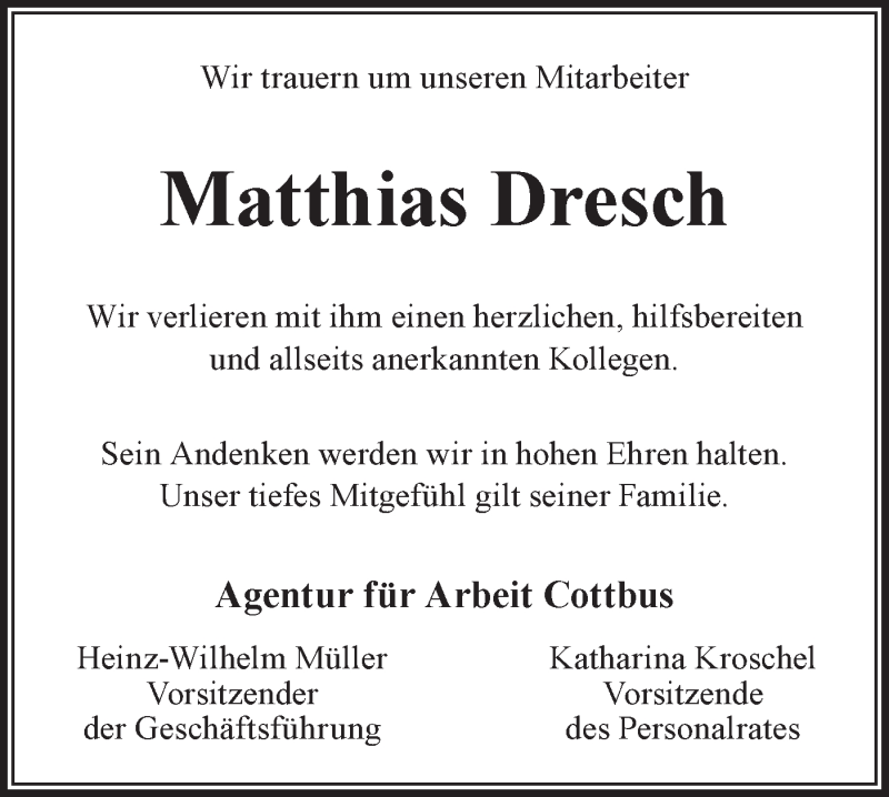 Hier finden Sie alle Traueranzeigen aus der Zeitung, die bisher für Matthias Dresch erschienen sind. Weitere Traueranzeigen, die in der Zeitung erscheinen, werden hier ebenfalls aufgelistet