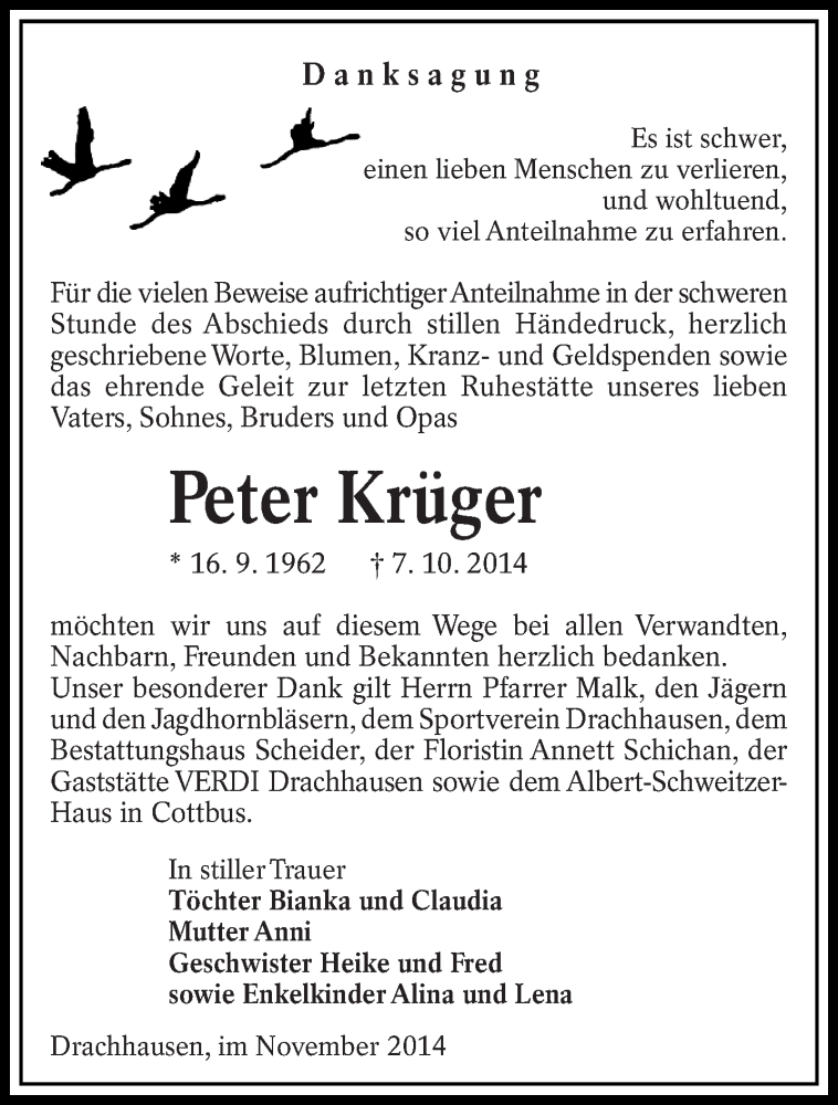 Hier finden Sie alle Traueranzeigen aus der Zeitung, die bisher für Peter Krüger erschienen sind. Weitere Traueranzeigen, die in der Zeitung erscheinen, werden hier ebenfalls aufgelistet