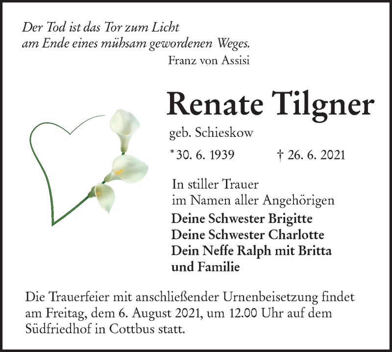 Hier finden Sie alle Traueranzeigen aus der Zeitung, die bisher für Renate Tilgner erschienen sind. Weitere Traueranzeigen, die in der Zeitung erscheinen, werden hier ebenfalls aufgelistet