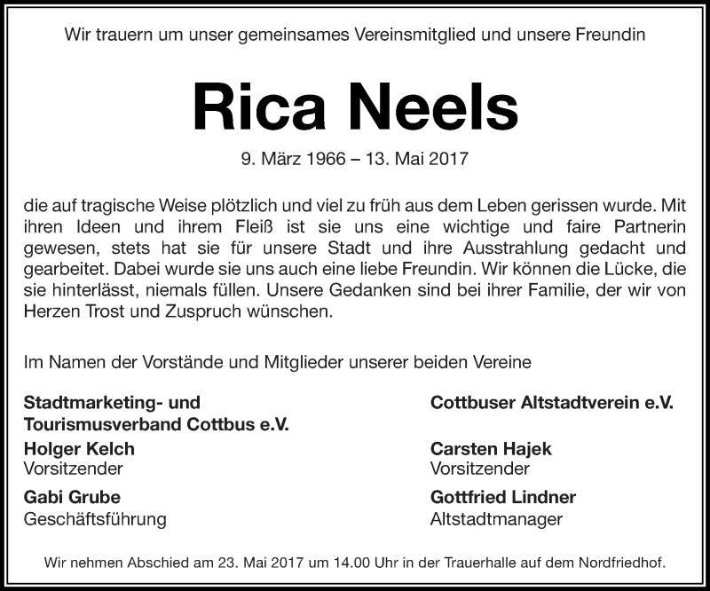 Hier finden Sie alle Traueranzeigen aus der Zeitung, die bisher für Rica Neels erschienen sind. Weitere Traueranzeigen, die in der Zeitung erscheinen, werden hier ebenfalls aufgelistet