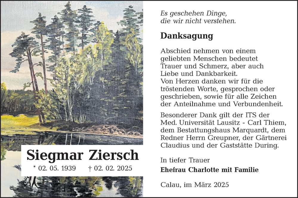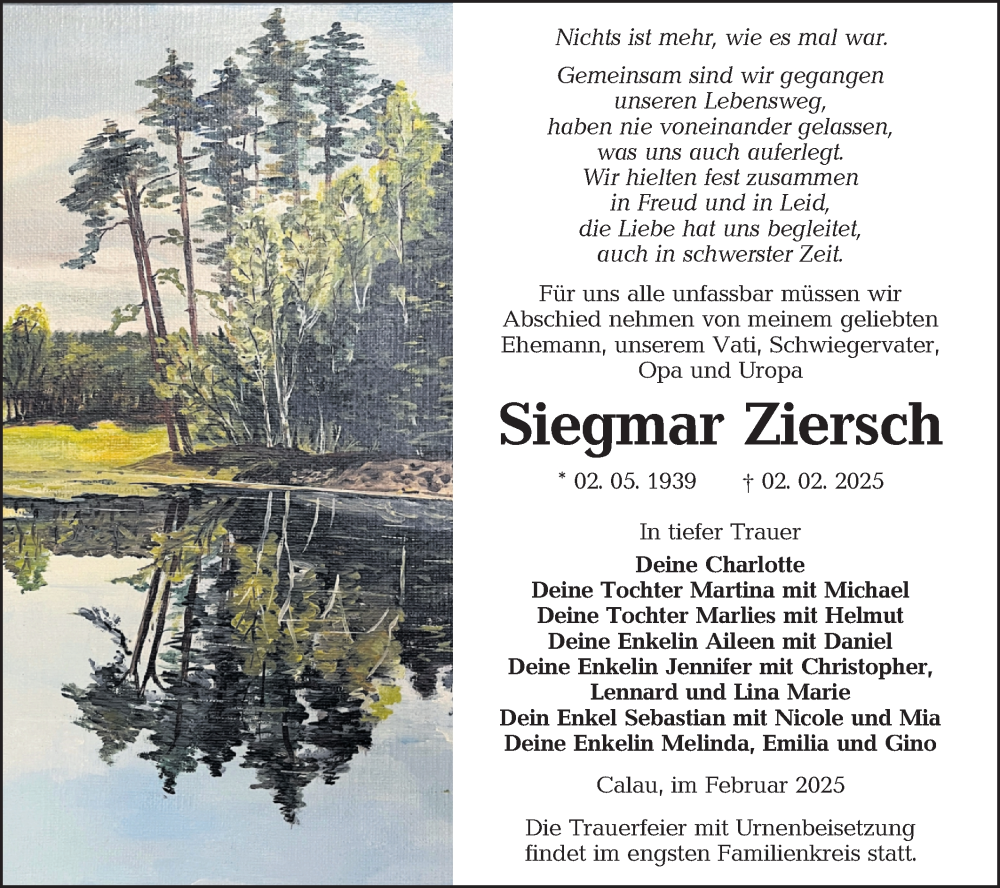 Hier finden Sie alle Traueranzeigen aus der Zeitung, die bisher für Siegmar Ziersch erschienen sind. Weitere Traueranzeigen, die in der Zeitung erscheinen, werden hier ebenfalls aufgelistet