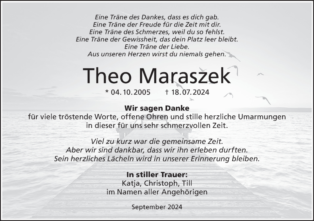 Hier finden Sie alle Traueranzeigen aus der Zeitung, die bisher für Theo Maraszek erschienen sind. Weitere Traueranzeigen, die in der Zeitung erscheinen, werden hier ebenfalls aufgelistet