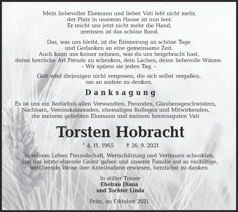 Hier finden Sie alle Traueranzeigen aus der Zeitung, die bisher für Torsten Hobracht erschienen sind. Weitere Traueranzeigen, die in der Zeitung erscheinen, werden hier ebenfalls aufgelistet