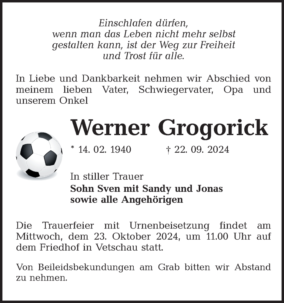 Hier finden Sie alle Traueranzeigen aus der Zeitung, die bisher für Werner Grogorick erschienen sind. Weitere Traueranzeigen, die in der Zeitung erscheinen, werden hier ebenfalls aufgelistet